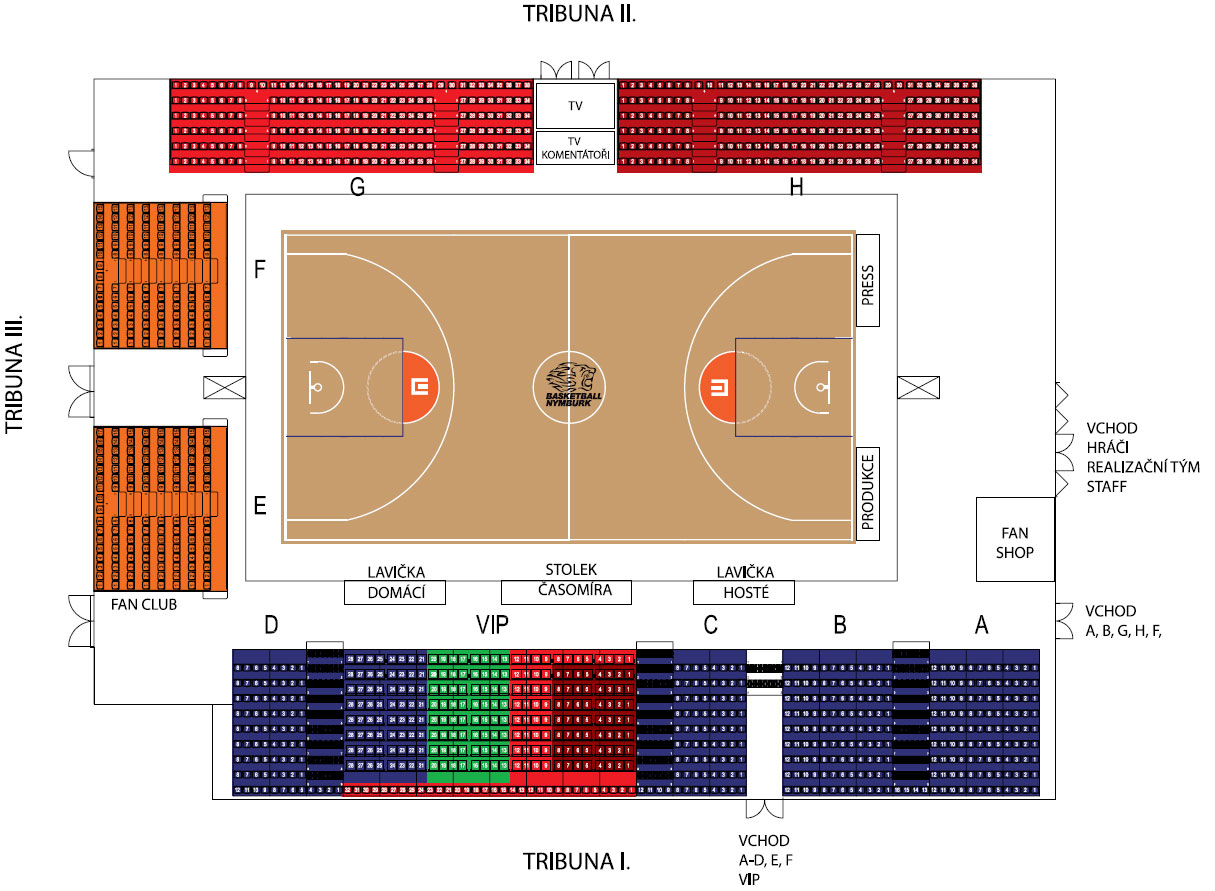 Hlediště v hale Královka bylo rozděleno do šesti cenových kategorií. Při volbě místa upozorňujeme, že sektory A, D, G jsou za lavičkou soupeře.